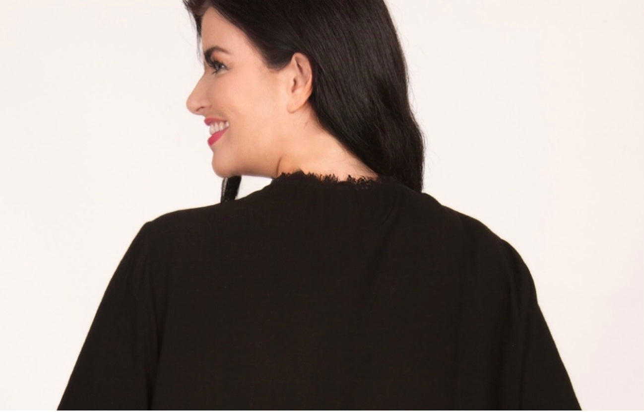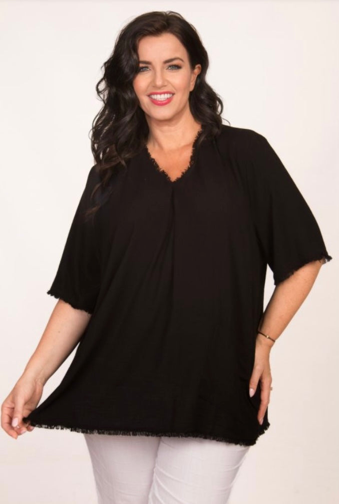 Black v-neck top. 1/2 sleeves. Cool viscose fabric. Washable.